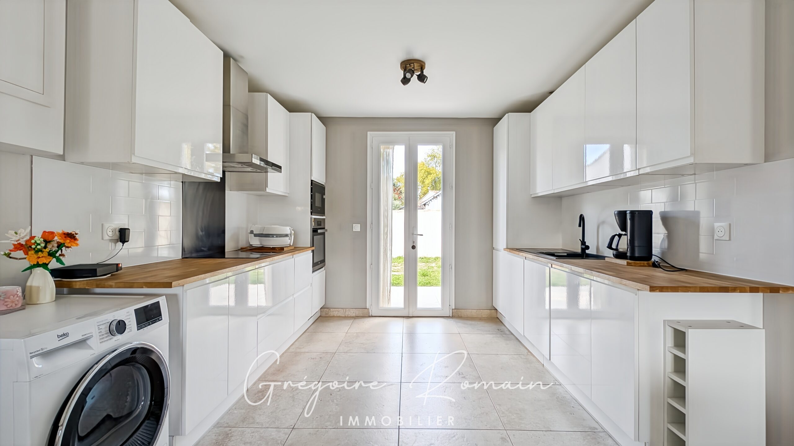 – une cuisine ouverte récente, totalement aménagée et équipée, donnant sur le jardin à l’arrière de la maison